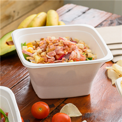 Au quotidien, comment utiliser des bols salades carrés 1,2 L bagasse biodégradables en vente à emporter ?