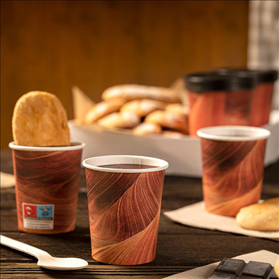 GOBELETS BOISSONS CHAUDES 1 PAROI 'ARIZONA' 180 ML 260 + 18 PE G/M2 Ø7,2/5,3x7,8 CM MARRON CARTON (1000 UNITÉS) - REF. 255.02