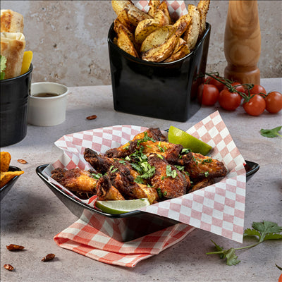 Ce modèle est spécialement conçu pour résister aux huiles et graisses des fritures intenses. Le papier ingraissable de 32 g/m2 limite efficacement les taches et évite les gouttes, ce qui garde vos corbeilles et plateaux propres plus longtemps. Il est biodégradable, sans PFOS ni PFOA, et les encres utilisées sont compostables, ce qui est rassurant quand vous cherchez une solution plus respectueuse de l’environnement. Pour le contact direct avec les aliments, il vous suffit d’utiliser la face non imprimée, afin de concilier sécurité alimentaire et présentation soignée.