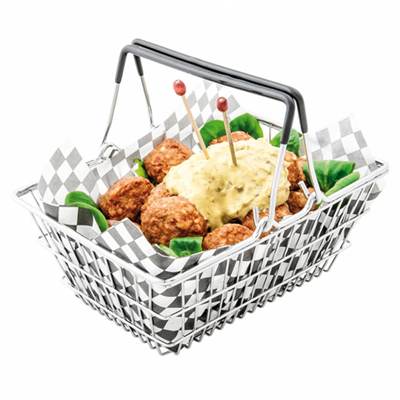 Quelles dimensions et quel conditionnement pour des mini paniers apéritif American style en acier chrome ?