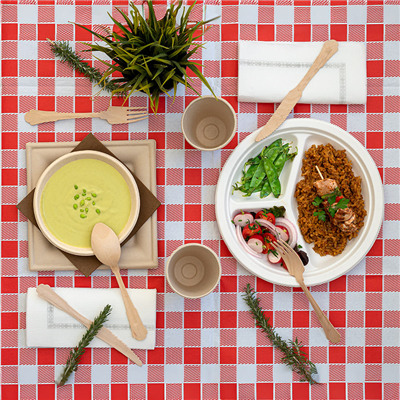 Les nappes coupées et pliées en feuilles et prêtes pour l'utilisation, sont une option très pratique pour les bars, restaurants et tout type de négoce d'hôtellerie. En étant déjà divisées vous ne perdrez pas de temps avec vos tâches quotidiennes. Ces nappes jetables sont très utiles parce qu'elles permettent de les avoir ensemble au même endroit, en occupant très peu d'espace. Poids par unité : 52.5g48 G/M2 Certifications : Biodégradable, Encre compostable, Apte au contact alimentaire., ISO 9001, Registre Sanitaire des Entreprises Alimentaires, Bonnes pratiques de fabrication, Code PEFC:
