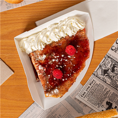 Au quotidien en crêperie, cet article s’intègre parfaitement dans un service rapide à emporter ou en vente au comptoir. Vous placez la crêpe directement sur la pelle, puis vous la pliez ou la garnissez selon votre style, tout en gardant une bonne rigidité pour le client. C’est très pratique pour les crêpes sucrées ou salées à manger en marchant, lors d’événements, marchés ou food-trucks. Vous limitez aussi la manipulation de la crêpe, ce qui rend le service plus fluide pour votre équipe et plus propre pour vos clients.