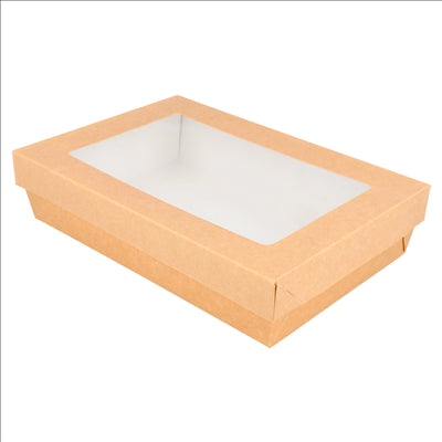 Quelle taille et contenance ont ces boîtes repas carton avec couvercle fenêtre 1300 ml ?