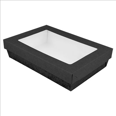 Quelle contenance réelle offrent des boîtes repas carton noir avec fenêtre 1300 ml ?