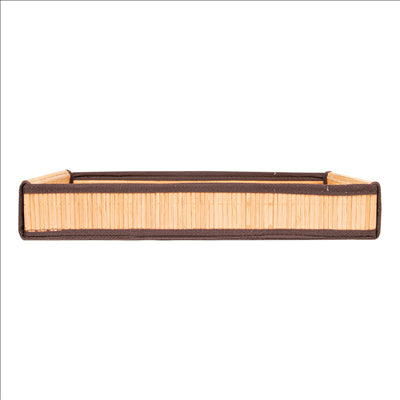 Ce modèle est parfaitement adapté au contact alimentaire, car il est fabriqué en fines lames de bambou, une ressource naturelle hautement renouvelable et très légère. Le bambou est reconnu pour être sûr pour les usages alimentaires, et cet article bénéficie en plus de certifications rassurantes : il est biodégradable, apte au contact alimentaire, et conforme à l’ISO 9001. Vous profitez ainsi d’un plateau solide, doté d’un bord en tissu qui améliore la durabilité, tout en restant cohérent avec une démarche éco-responsable exigeante dans votre établissement.