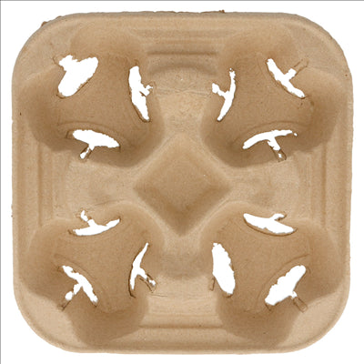 Ce modèle est moulé en cellulose à partir de fibres de papier et carton recyclés, puis traité pour résister à l’eau. Vous pouvez donc y installer aussi bien des boissons chaudes que froides sans qu’il se déforme ou se détrempe pendant le transport. La structure rigide maintient les gobelets bien stables, ce qui limite les risques de renversement, même quand le plateau est rempli. Pour vous, cela signifie un support fiable pour les services à emporter, tout en restant cohérent avec une démarche éco-responsable et apte au contact alimentaire.