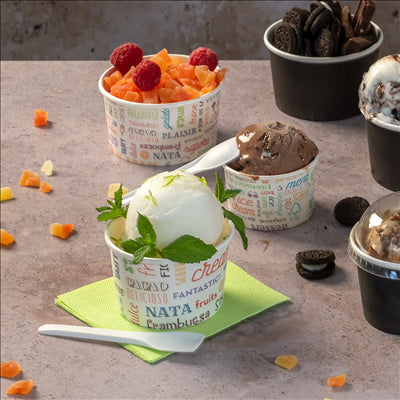 Ce modèle est fabriqué en carton avec un recouvrement en PE, ce qui leur donne une excellente résistance et une vraie étanchéité pour vos préparations froides ou légèrement chaudes. Vous pouvez y servir des glaces, sorbets ou desserts gelés sans craindre les fuites ni le ramollissement prématuré du contenant. Le matériau est apte au contact alimentaire et certifié, ce qui rassure quand vous servez vos clients au quotidien. Vous disposez ainsi d’un contenant fiable, pratique et conforme aux exigences d’hygiène de la restauration professionnelle.