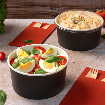 Le pot saladier en carton noir est traité anti-graisse, ce qui lui permet aussi de contenir des plats humides.