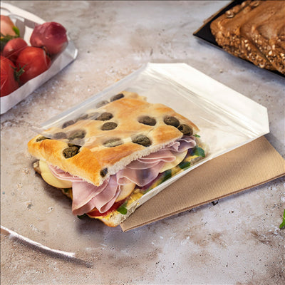 Au quotidien, ces sachets avec base et fenêtre pour vente à emporter vous simplifient vraiment le service. Vous pouvez y présenter brochettes, sushis, viennoiseries, sandwiches, fruits ou légumes en créant un display visuel très attractif grâce à la fenêtre. L’ouverture est facile, ce qui accélère la mise en sachet pendant les coups de rush. Une fois remplis, vous pouvez les refermer avec une étiquette autocollante pour sécuriser le transport. C’est pratique pour la vente à emporter, les comptoirs traiteur, les snacks ou les corners street-food où l’on a besoin d’aller vite tout en gardant une présentation soignée.