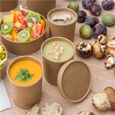 En situation réelle, ces bols soupe vous servent autant pour le chaud que pour le froid. Vous pouvez y proposer des soupes, nouilles, plats mijotés, mais aussi des salades composées ou desserts gourmands à emporter. La double paroi garde la chaleur ou la fraîcheur selon vos besoins, tandis que le couvercle avec trou laisse les aliments « respirer », pratique pour les préparations fumantes. C’est une pièce adaptée aux concepts de vente à emporter, traiteurs, food trucks ou cantines qui veulent une solution unique polyvalente pour différents menus.