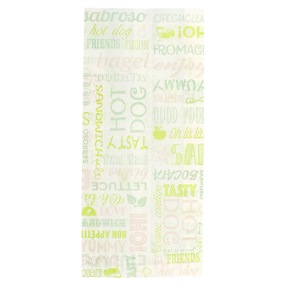 Ce modèle est conçu en papier ingraissable certifié apte au contact alimentaire, ce qui vous permet d’emballer des sandwiches chauds ou froids, même assez gras, sans que le gras ne traverse. Le papier reste propre en main et sur le comptoir, ce qui est appréciable en service soutenu. Vous bénéficiez en plus de certifications comme FSC®, biodégradable et encre compostable, ainsi que l’absence de PFOS-PFOA, rassurante pour votre clientèle sensible à l’impact sanitaire et environnemental. Pour un établissement, c’est un bon moyen d’allier hygiène, confort d’usage et engagement écoresponsable.