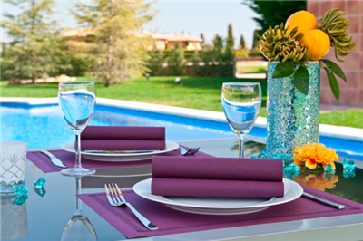 Les serviettes fabriquées en voie sèche, le papier est similaire à la serviette en tissue. Ce matériel présente une résistance et apparence optimale, avec une texture douce qui situe ces serviettes en haut gamme pour la décoration des tables. Oubliez-vous des blanchisseries parce que ces serviettes sont à usage unique. Leur utilisation est très étendu pour réceptions et repas de luxe. C'est aussi très commun de les trouver aux mariages et célébrations importantes. Produit fabriqué à partir de fibres vierges de ouate sèche de haute qualité. Il offre une résistance à la fois humide et sèche, ainsi qu’une texture douce très similaire au matériau textile. Il est disponible sous différents formats. Produits fabriqués en blanc, colorés ou dans la gamme blanche décorée. Disponibles en serviettes et nappes. La gamme blanche dispose d’un certificat répondant à la Norme EN 13432 qui indique que le produit est compostable. Poids par unité : 9g55 G/M2 Certifications : Biodégradable, Encre compostable, Apte au contact alimentaire., ISO 9001, Registre Sanitaire des Entreprises Alimentaires, Bonnes pratiques de fabrication, Code PEFC:
