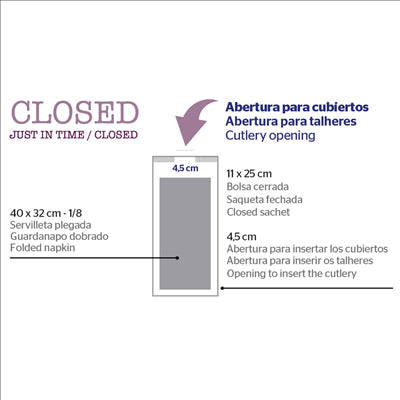 Au quotidien, vous allez surtout apprécier ces Serviettes pour gagner du temps en mise en place, surtout en périodes de rush. Le principe "Just in Time Closed" permet de préparer vos couverts à l’avance dans chaque sachet, avec la serviette déjà intégrée. Vous n’avez plus qu’à poser l’ensemble sur la table ou à le remettre directement au client. C’est idéal pour les restaurants à service continu, les terrasses, les selfs ou les traiteurs qui doivent enchaîner les couverts rapidement, tout en offrant une présentation propre, pratique et cohérente avec une démarche plus responsable.