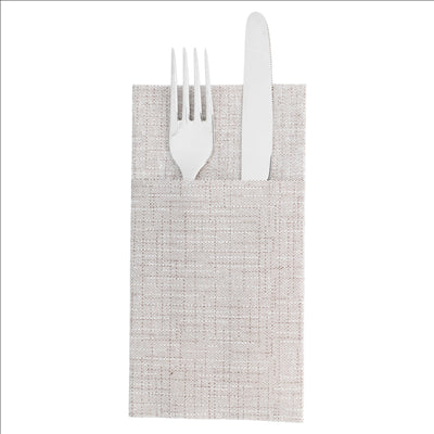 Les serviettes kangourou sont une des options plus pratiques et élégantes qui existent à ce jour sur le marché. Elles sont pliées en formant un sac pour mettre les couverts et elles sont pensées notamment pour votre terrasse du restaurant ou hôtel. Le matériel utilisé pour ces serviettes est l'Airlaid ou le Dry Tissue, le papier plus similaire à la serviette en tissu. Ce matériel présente une résistance et apparence optimale, avec une texture douce qui situe ces serviettes en haut de gamme pour la décoration des tables. Vous trouverez ces serviettes en une grande variété de couleurs et tailles . Choisissez celle que vous aimez pour votre négoce Horeca (hôtellerie, restauration et traiteur) et donnez à votre table l'élégance que les clients apprécient tellement. Oubliez les blanchisseries car ces serviettes sont à usage unique Poids par unité : 9g55 G/M2 Certifications : Biodégradable, Encre compostable, Apte au contact alimentaire., ISO 9001, Registre Sanitaire des Entreprises Alimentaires, Bonnes pratiques de fabrication, Code PEFC: