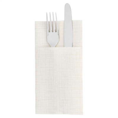 Les serviettes kangourou sont une des options plus pratiques et élégantes qui existent à ce jour sur le marché. Elles sont pliées en formant un sac pour mettre les couverts et elles sont pensées notamment pour votre terrasse du restaurant ou hôtel. Le matériel utilisé pour ces serviettes est l'Airlaid ou le Dry Tissue, le papier plus similaire à la serviette en tissu. Ce matériel présente une résistance et apparence optimale, avec une texture douce qui situe ces serviettes en haut de gamme pour la décoration des tables. Vous trouverez ces serviettes en une grande variété de couleurs et tailles . Choisissez celle que vous aimez pour votre négoce Horeca (hôtellerie, restauration et traiteur) et donnez à votre table l'élégance que les clients apprécient tellement. Oubliez les blanchisseries car ces serviettes sont à usage unique Poids par unité : 9g55 G/M2Certifications : Biodégradable, Encre compostable, Apte au contact alimentaire., ISO 9001, Registre Sanitaire des Entreprises Alimentaires, Bonnes pratiques de fabrication, Code PEFC: