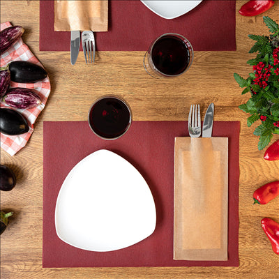 En situation réelle, vous les utilisez surtout pour préparer vos tables de terrasse ou de jardin à l’avance, tout en gardant les couverts protégés. Vous glissez simplement couteau, fourchette et éventuellement cuillère dans l’ouverture prévue, puis vous posez la serviette directement sur la table ou le plateau. Cet article est particulièrement adapté aux services en extérieur, où l’hygiène des ustensiles est cruciale face à la poussière ou au vent. Vous gagnez un temps précieux au moment du rush, tout en offrant une présentation propre et cohérente avec une démarche écologique.
