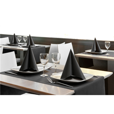 Quelles dimensions et conditionnement pour un chemin de table tête-à-tête airlaid noir biodégradable ?