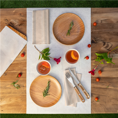 Les chemins de table, connus aussi comme "Tête à tête", sont des nappes idéales pour deux convives. Fabriquées avec un mélange de viscose et cellulose, notre Like Linen, ressemble au tissu. Pour cette raison, il est très apprécié entre les hôteliers, puisque leur qualité donne au produit une finition douce et résistante, qui dotera d'élégance les tables de vos restaurants. Avec une largeur de 40 centimètres, et pré-coupé chaque 120 centimètres, le produit "Tête à tête" vous offre 20 nappes jetables qui vous faciliteront le travail et qui permettront oublier les blanchisseries. Le Spunlace, également connu sous le nom de tissu non tissé, est un matériau de haute qualité fabriqué à partir de viscose et de cellulose. Son apparence est pratiquement similaire au tissu, ce qui lui confère une douceur extraordinaire et donne une touche d’élégance à la table. Il présente une grande résistance à l’humidité. Il s’agit d’un produit respectueux de l’environnement, fabriqué à partir de matériaux biodégradables et compostables. Cette gamme dispose d’un certificat répondant à la Norme EN 13432 qui indique que le produit est compostable. Poids par unité : 767.4g70 G/M2 Certifications : Biodégradable, Apte au contact alimentaire., ISO 9001, Registre Sanitaire des Entreprises Alimentaires, Bonnes pratiques de fabrication